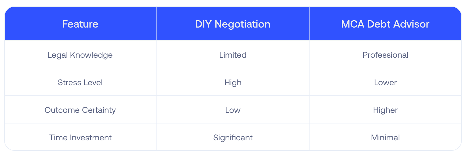 DIY Negotiation vs. Professional MCA Debt Advisor